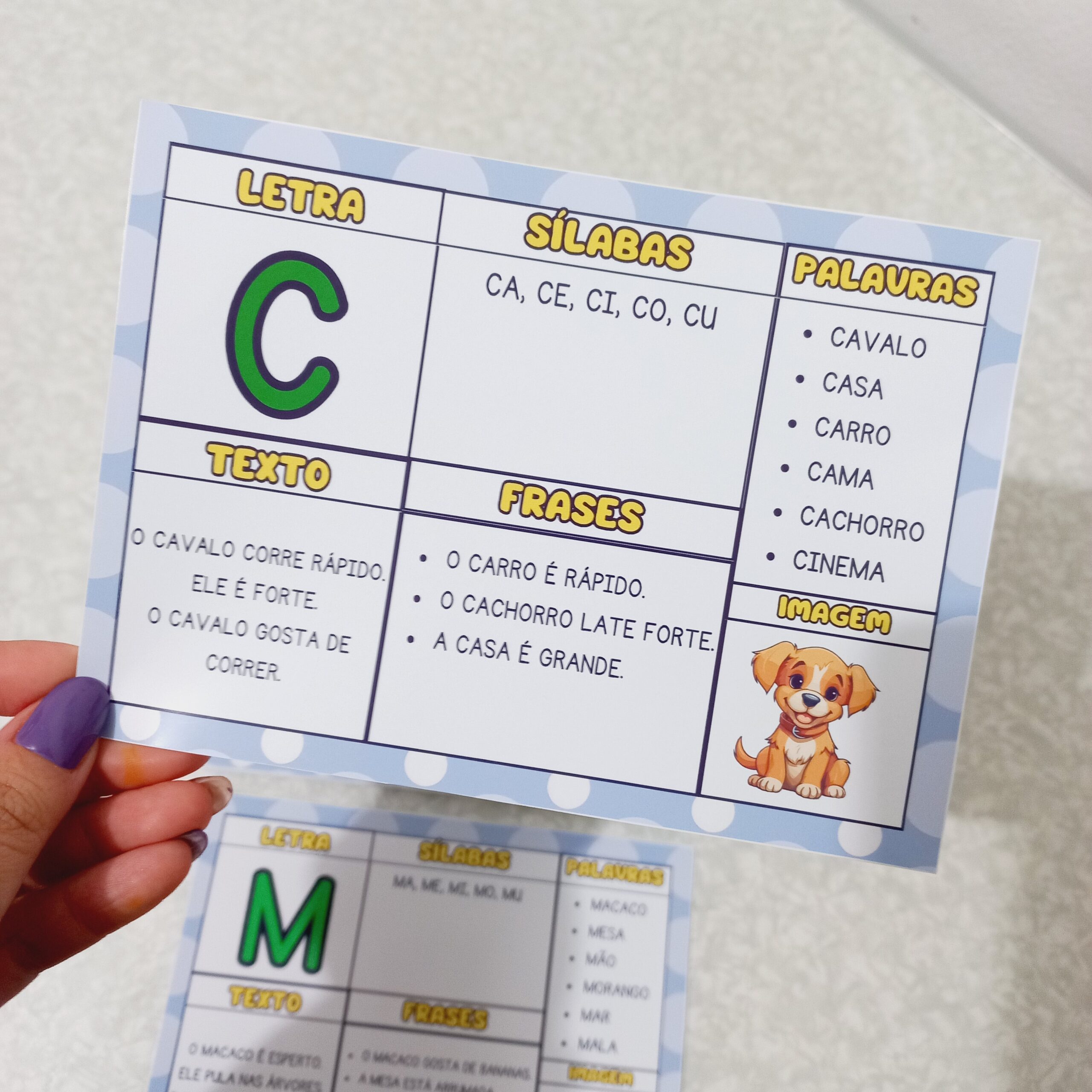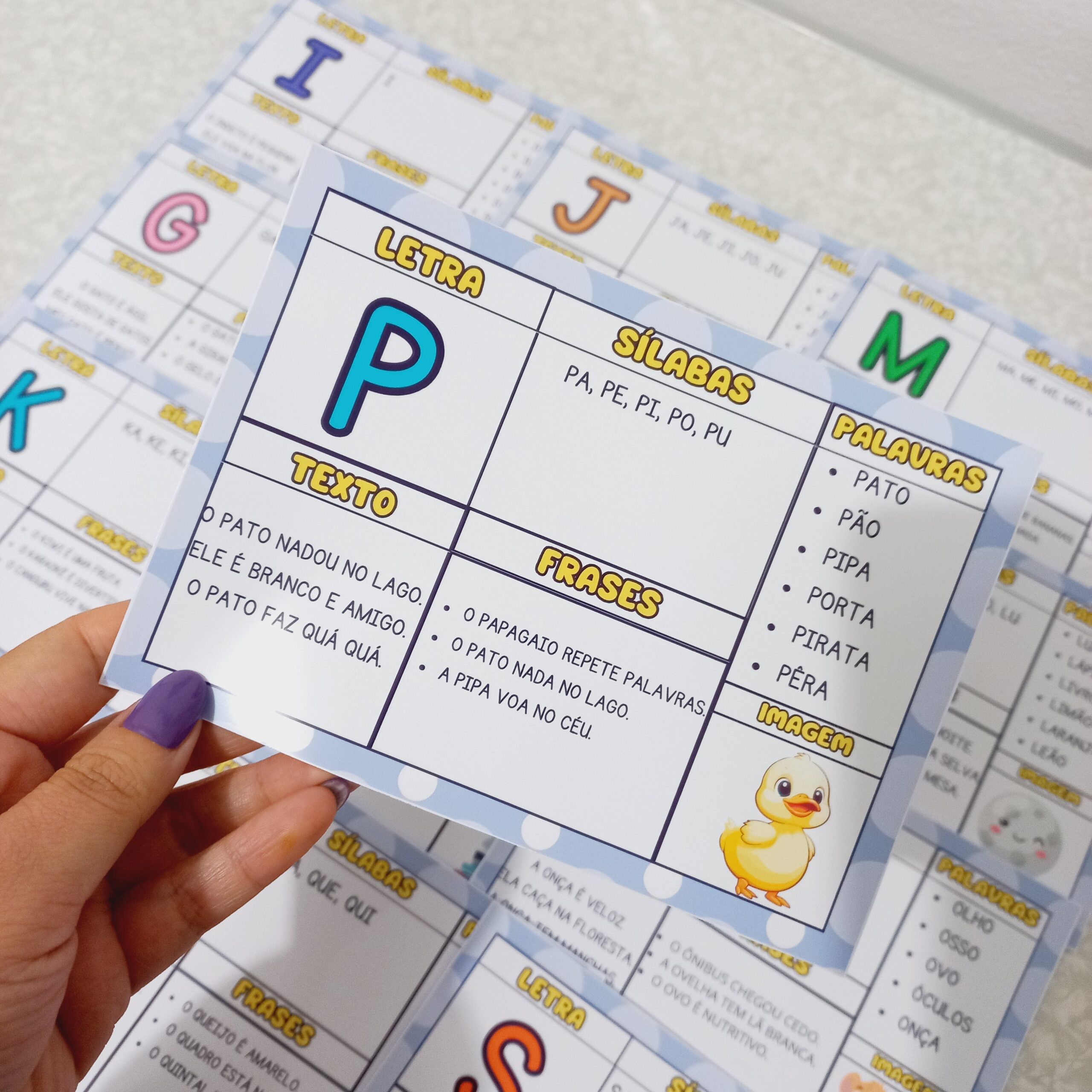 ✅Desenvolva a alfabetização dos seus alunos com um material completo e dinâmico! Cada página traz uma letra do alfabeto com suas sílabas,textos,frases e imagens que reforçam o aprendizado.