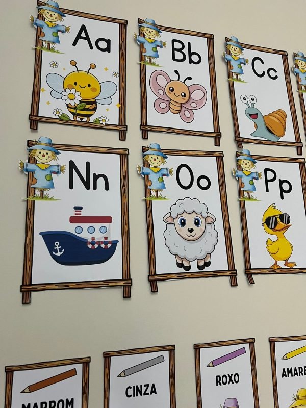 O material inclui alfabeto, números, cores e formas geométricas, organizados em 50 páginas lúdicas e didáticas, perfeitas para uso em sala de aula ou em casa.